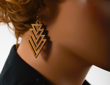These earrings are expertly laser-engraved in a variety of styles. They are medium-sized and constructed from a blend of cherry wood ply mix. The final product is carefully finished with a natural wax, which serves to protect and polish the wood while preserving its inherent grain.